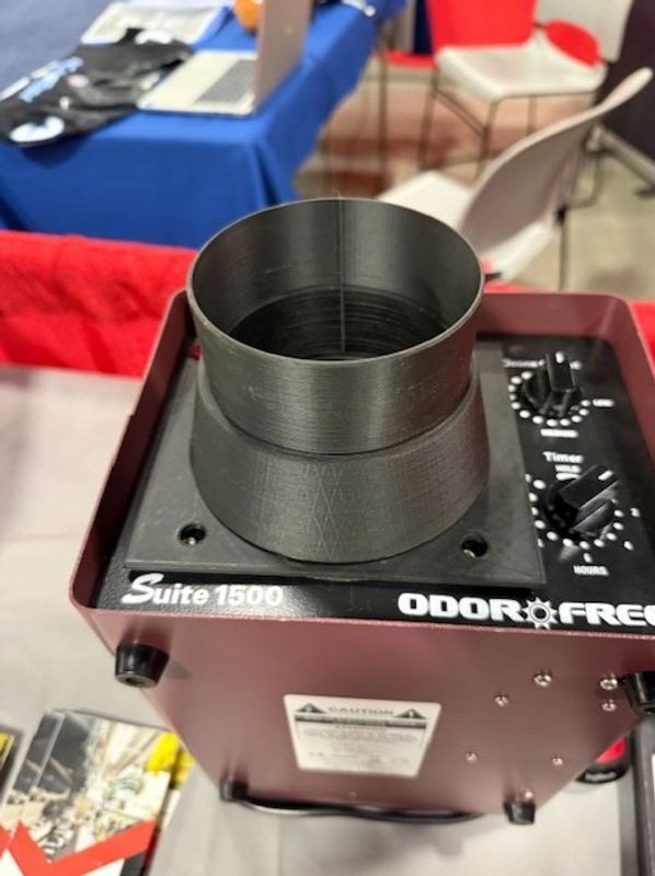 This is the ozone machine we use. It connects using a dryer vent to the base of our cart and the ozone is directed through the uprights to get rid of odor. The ozone machine has a 5-year warranty.